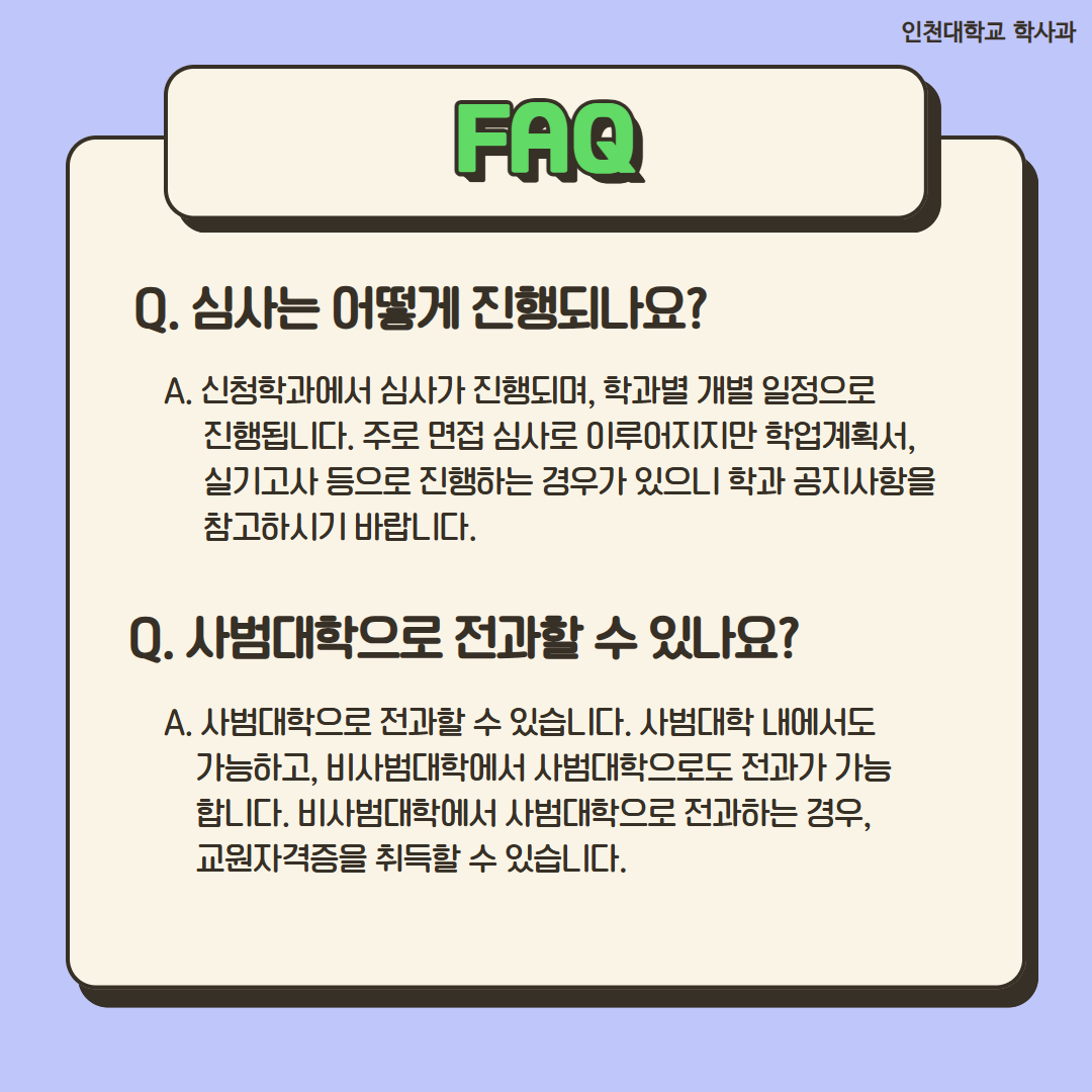 - 선정된 자가 해당학기 휴학 및 미복학 시에는 전과 허가 취소