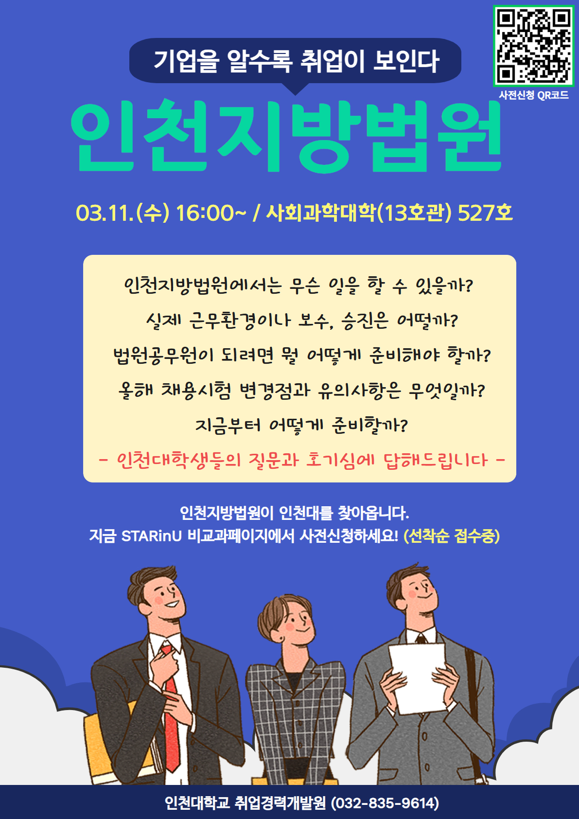 인천지방법원(3/11(수)) 및 한미그룹(3/30(월)) 채용설명회 안내