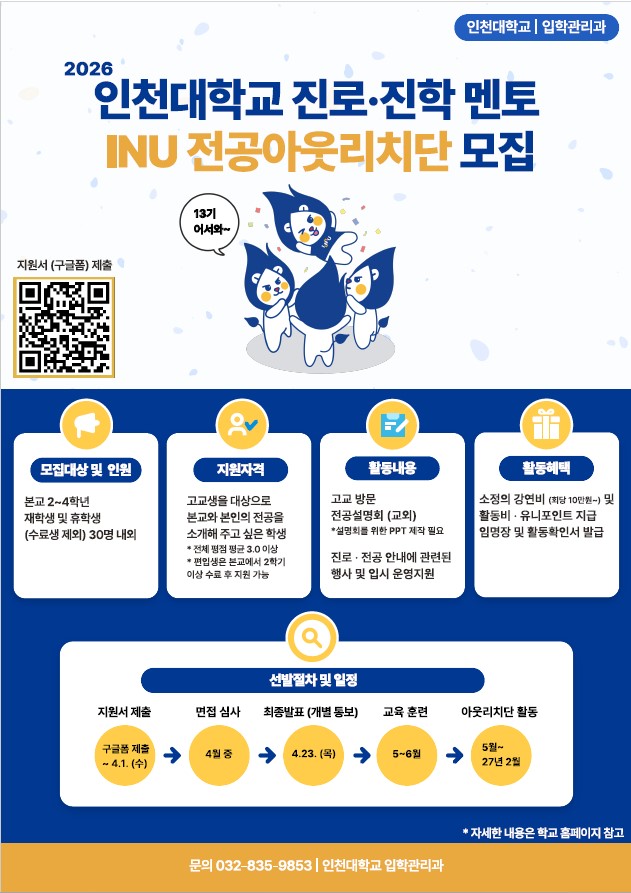 [고교교육기여대학지원사업] 2026 「INU 전공아웃리치단」 신규 단원 모집