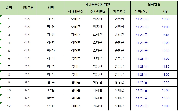 2025-2학기 학위청구 논문 심사일정을 아래와 같이 안내 드립니다.